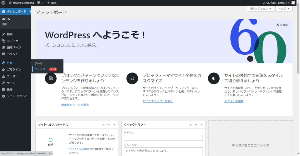 ダッシュボード → 「外観」→ 「エディター」(ベータ) ・・・