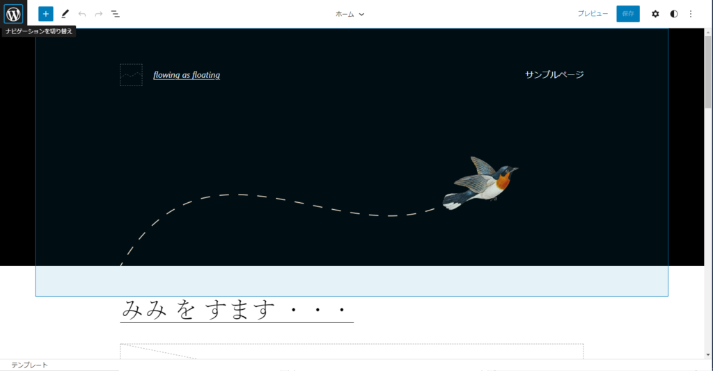 「エディター」を クリックすると 下の画面が出て 、その左上の「Ⓦ」(ナビゲーションを切り替え) を クリック ・・・